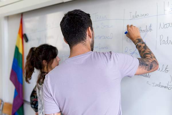 O nosso Projecto Educação LGBTI realiza sessões de esclarecimento e debate sobre orientação sexual, identidade e expressão de género e características sexuais em escolas de todo o país, incluindo ilhas.