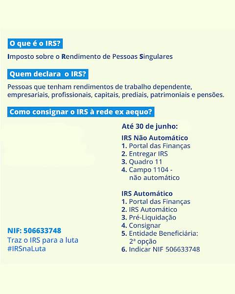 Para consignar o IRS à rede ex aequo, podes fazê-lo de duas maneiras.